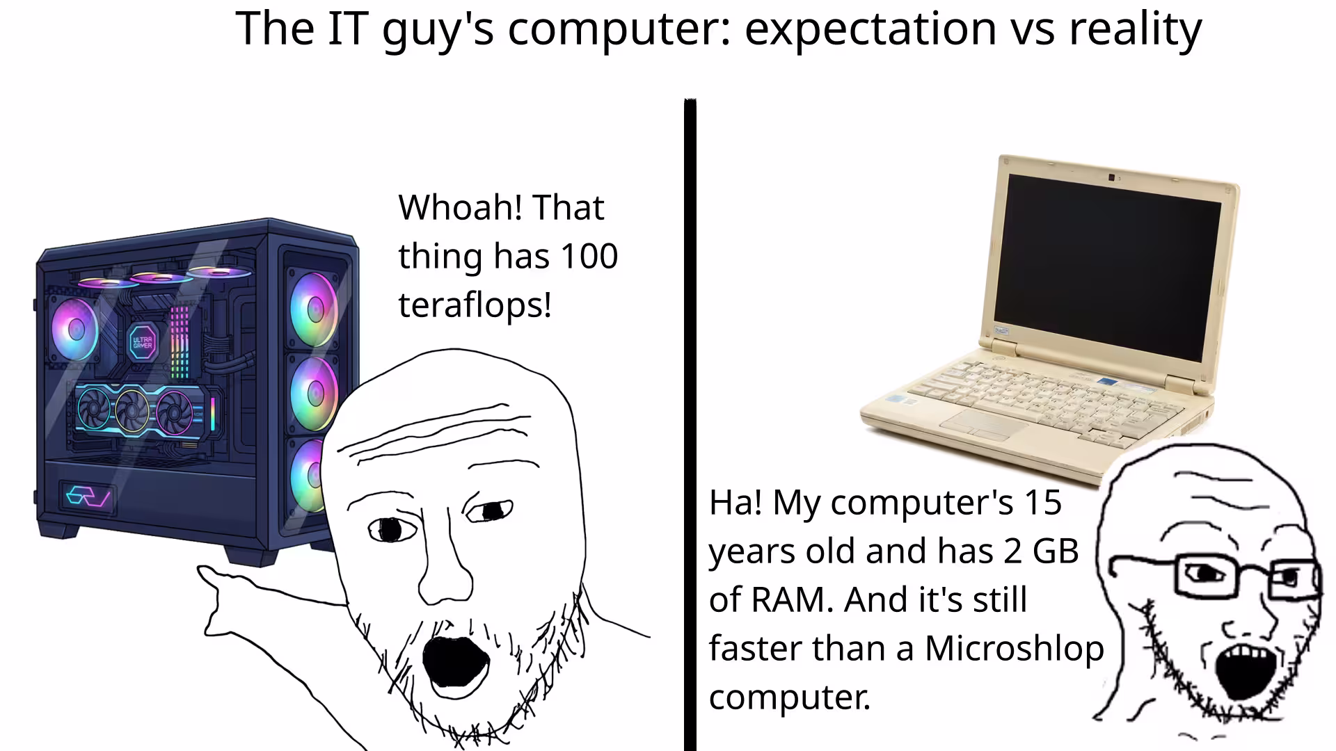 Memes aside, the lightweight laptop - what I’m typing this post on - has a whopping total of 2 GB of ram (1.88 usable) and an Intel Bay Trail processor from over a decade ago. And, believe it or not, it’s a pretty capable machine; at least after being very particular about what I install on it. The device itself is a former Chromebook, now sporting Coreboot and Debian 13.